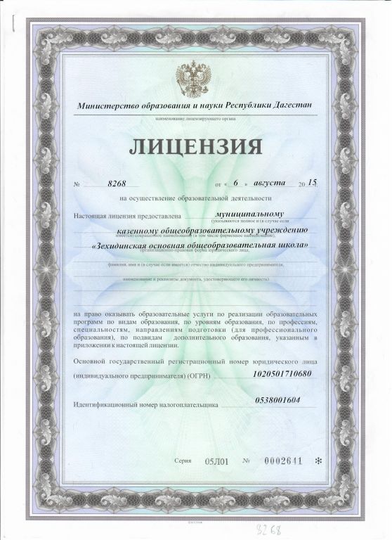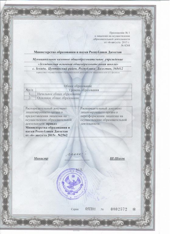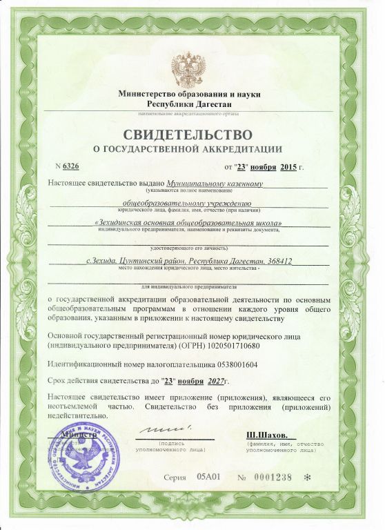 | Полное наименование образовательной организации* | Муниципальное казенное общеобразовательное учреждение "Зехидинская основная общеобразовательная школа" имени Магомедова Бадрудина Шахбановича |